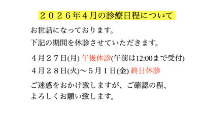 - 2026.4.09 2026年4月の診療について